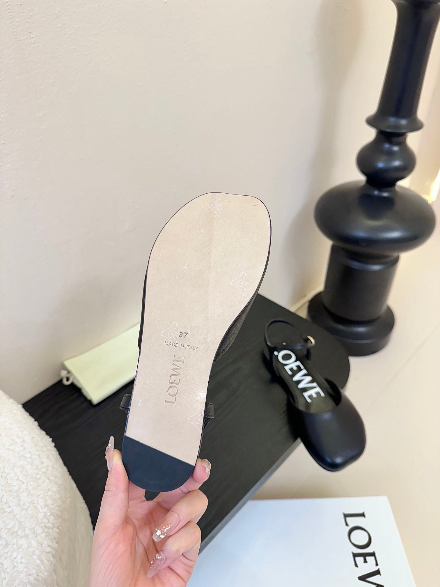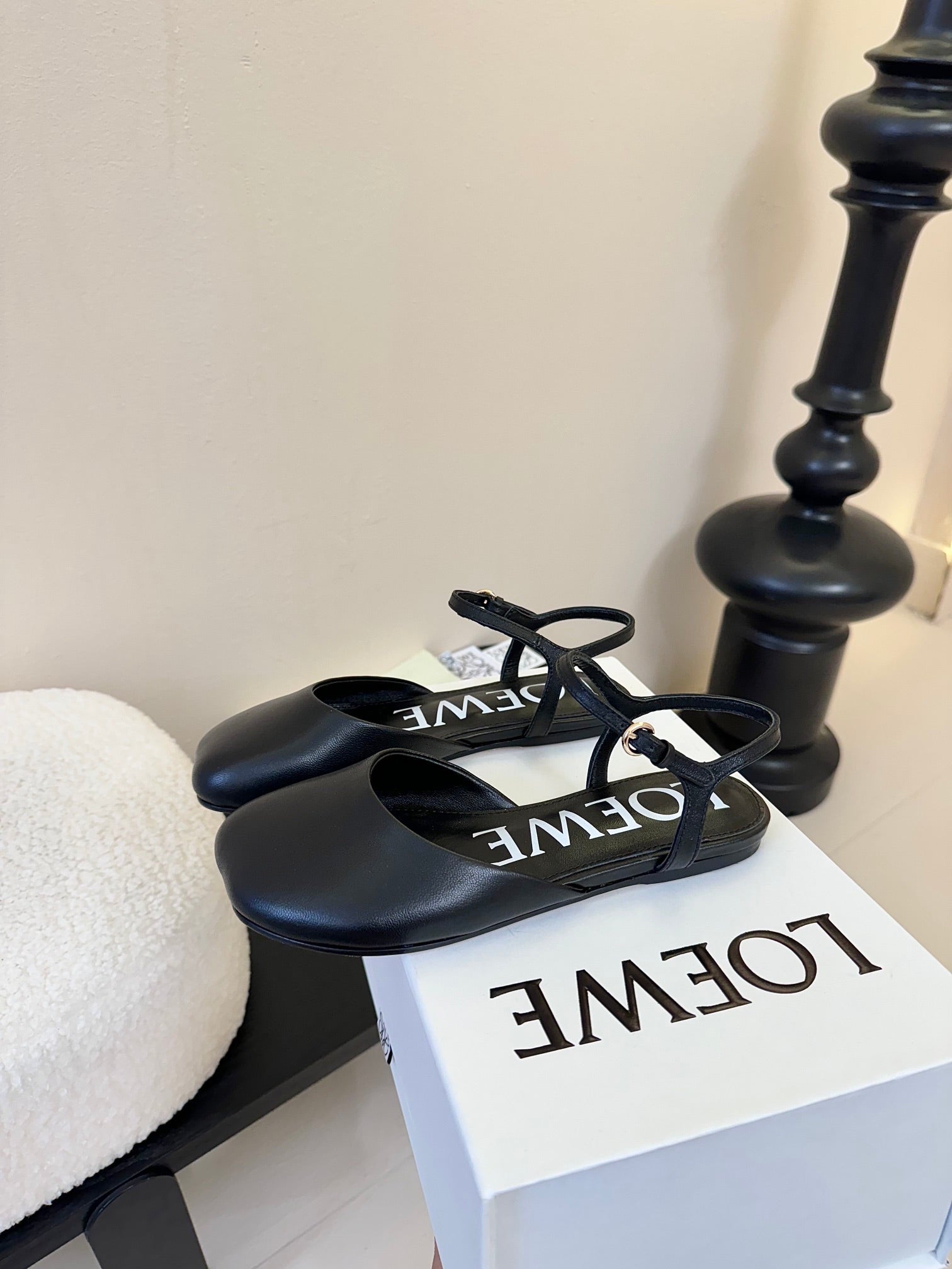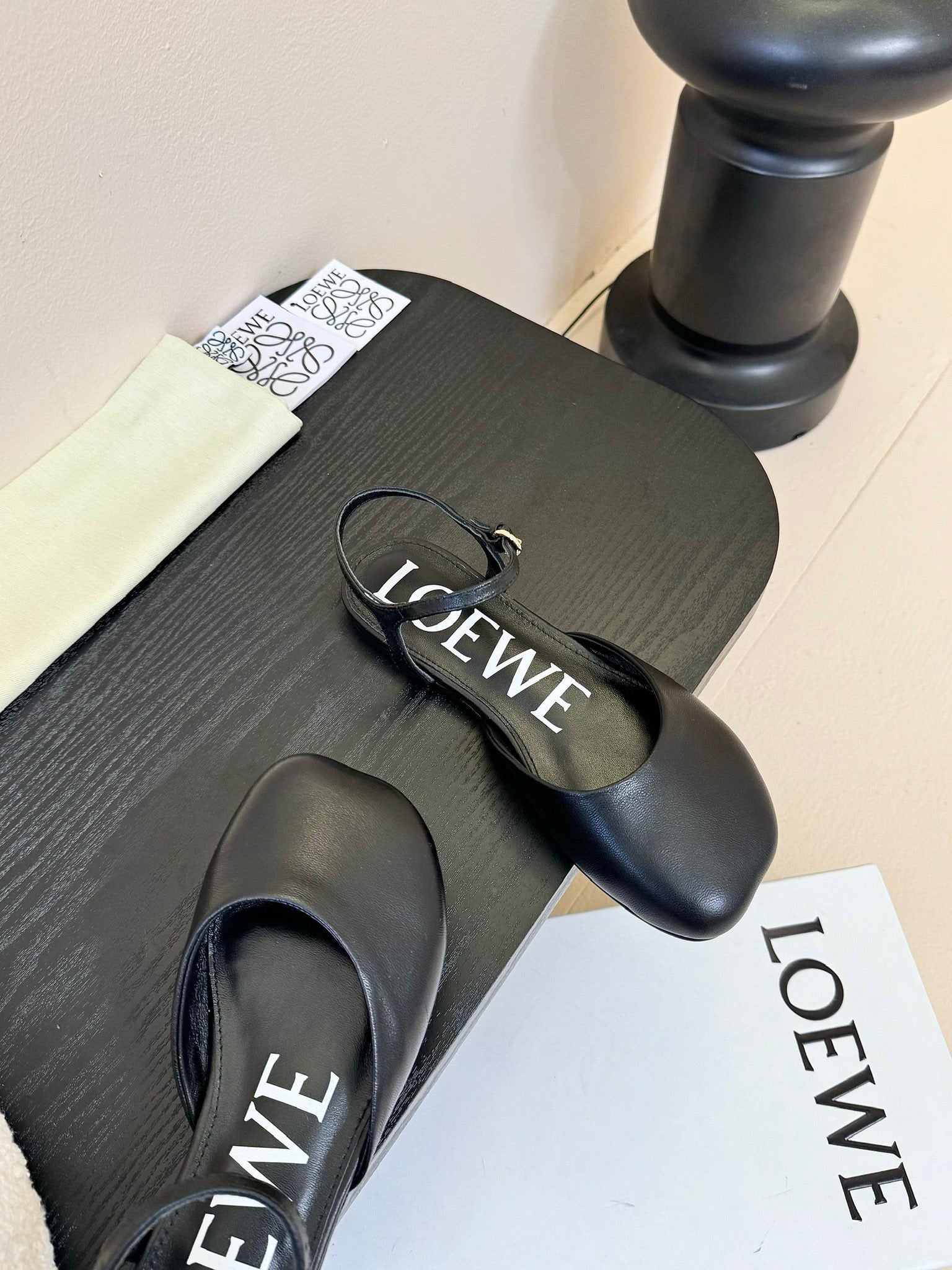 Loewe 25 Toy Ankle Strap Ballet Flat Black Calfskin 309171