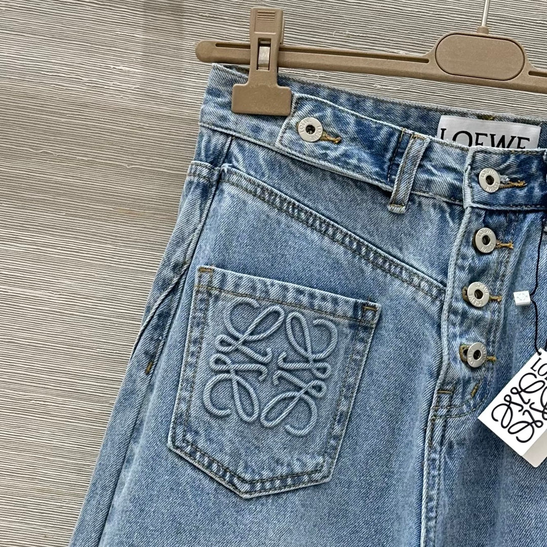 Loewe 25 Pocket Embossed Letter Straight Jeans Blue Cotton