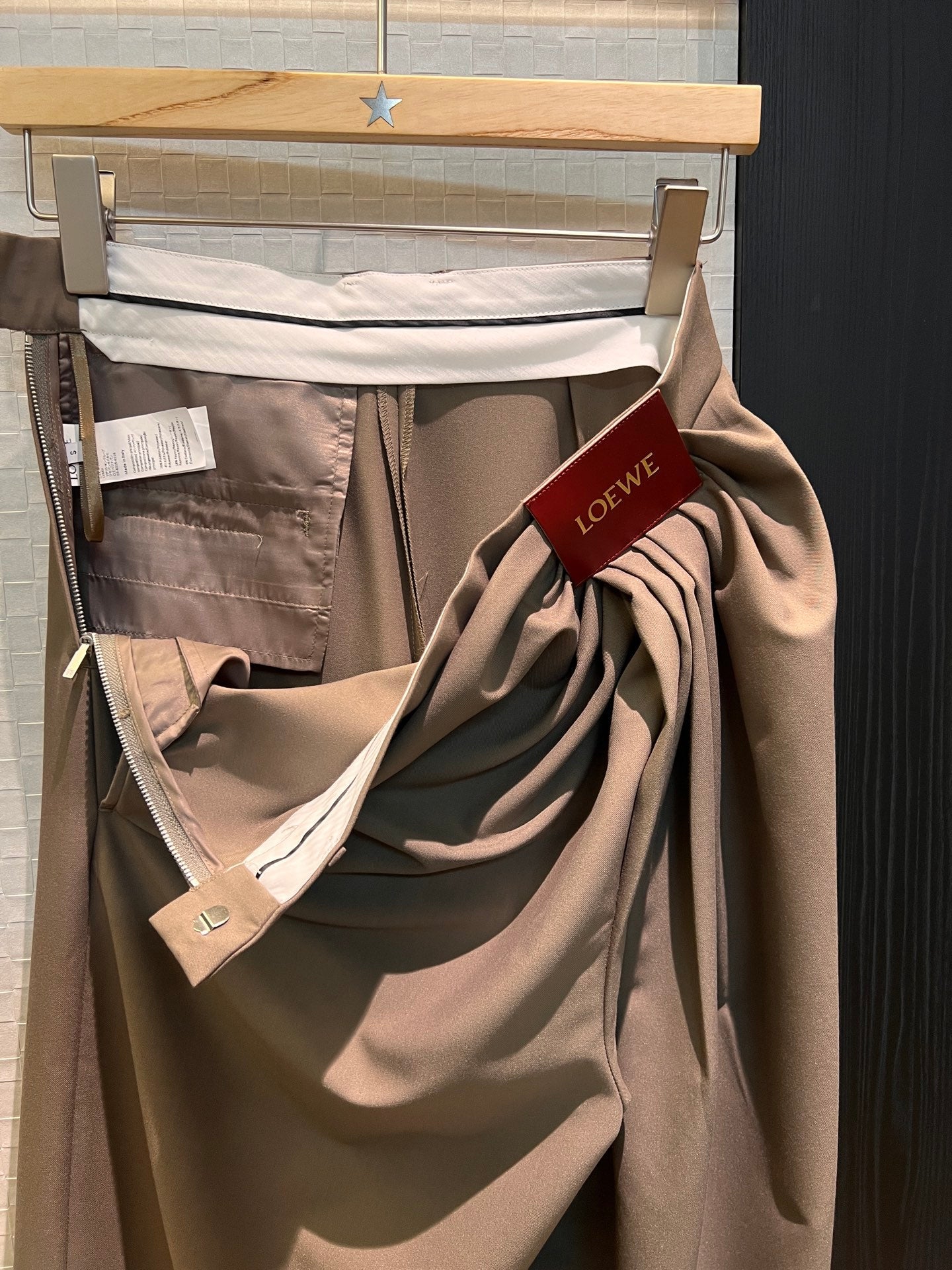 Loewe Pleated Wide Leg Pants Brown Cotton