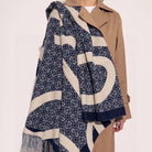 ANAGRAM SCARF 140 CM IN NAVY BLUE WOOL 410215