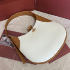 BOBBIN SHOULDER BAG 32 IN WHITE MIX BRONZE BROWN CALFSKIN WITH GOLD HARDWARE
