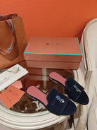 Summer Charms Sandals in Navy Suede Maroon Lambskin