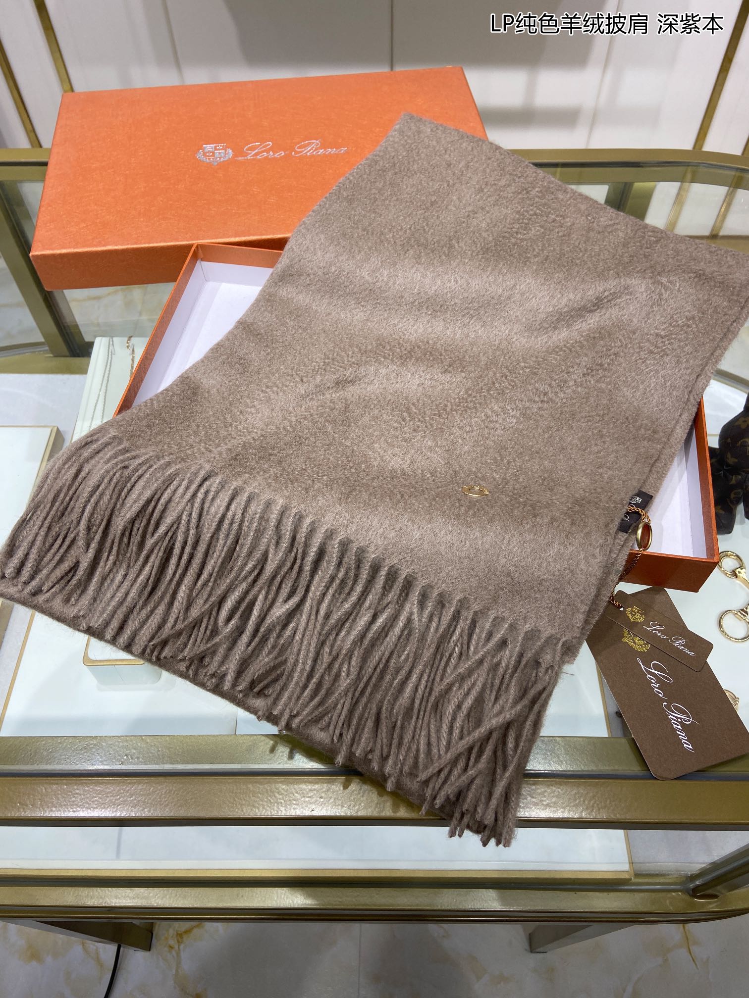 LP Grande Unita Scarf 200 CM In Grey Brown Cashmere 645519