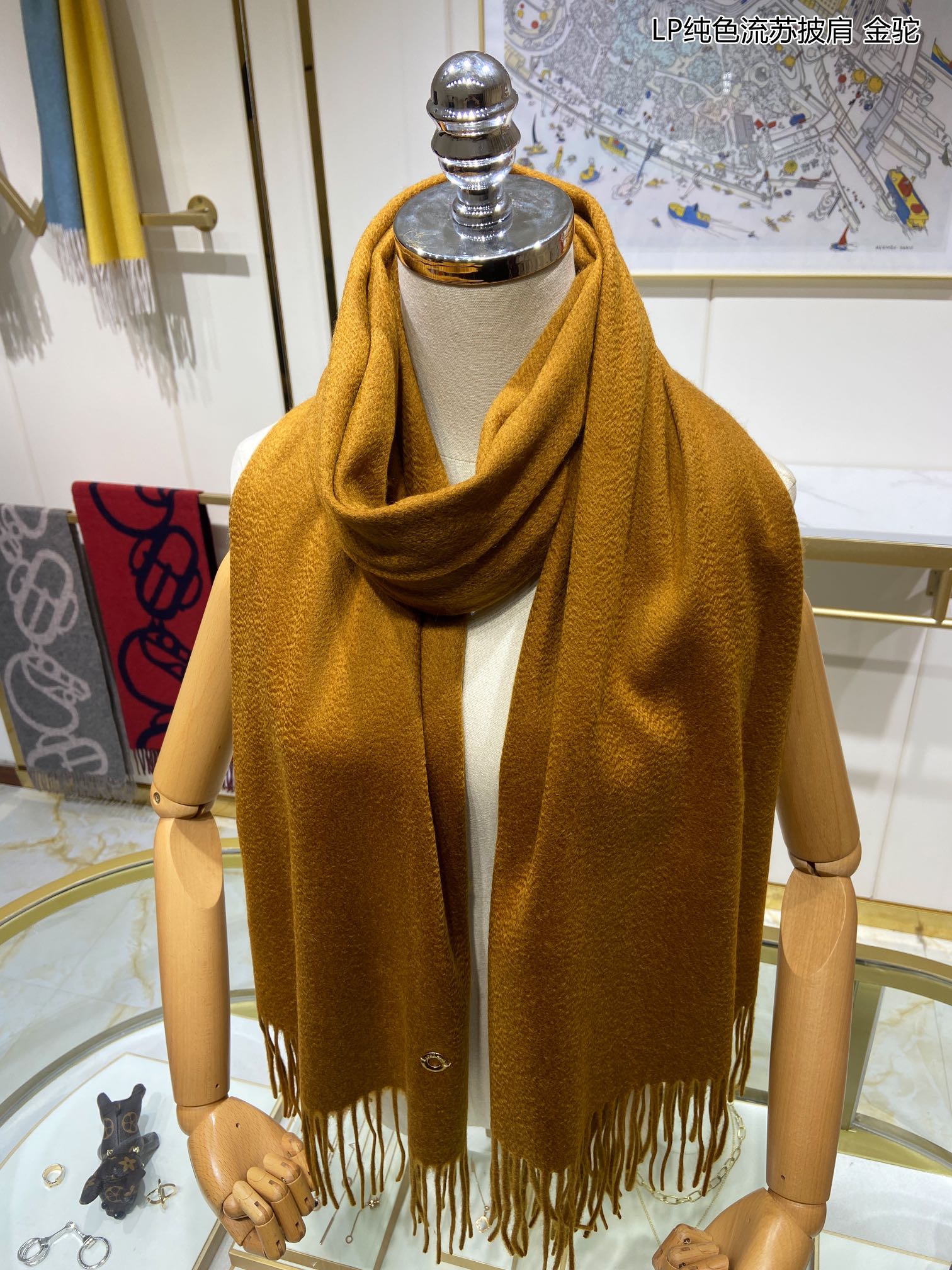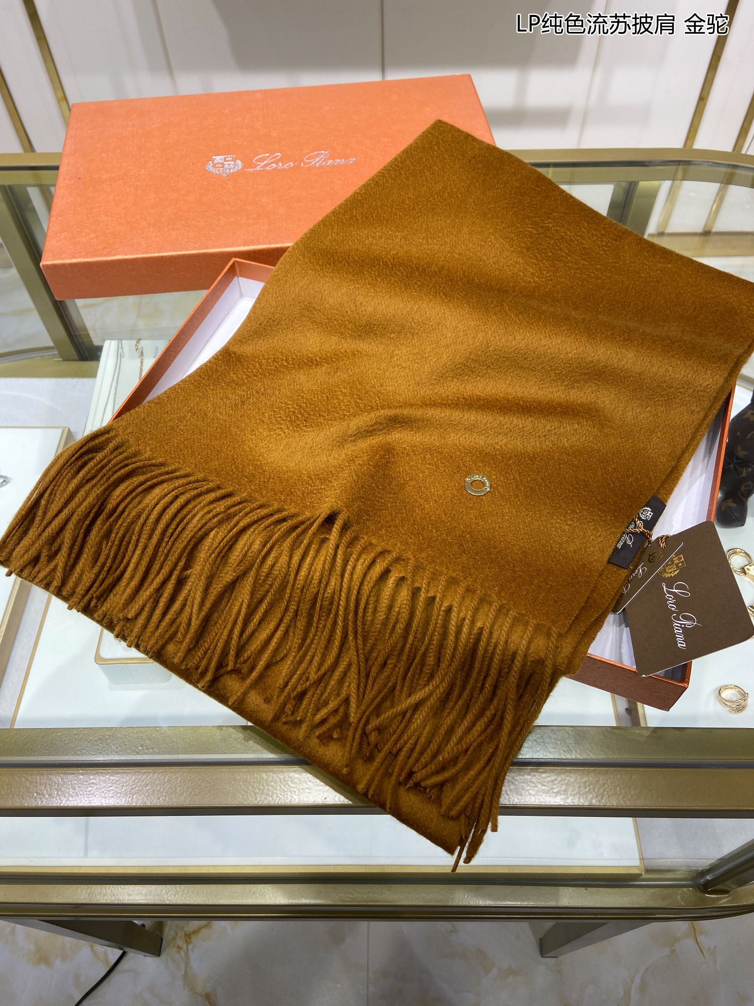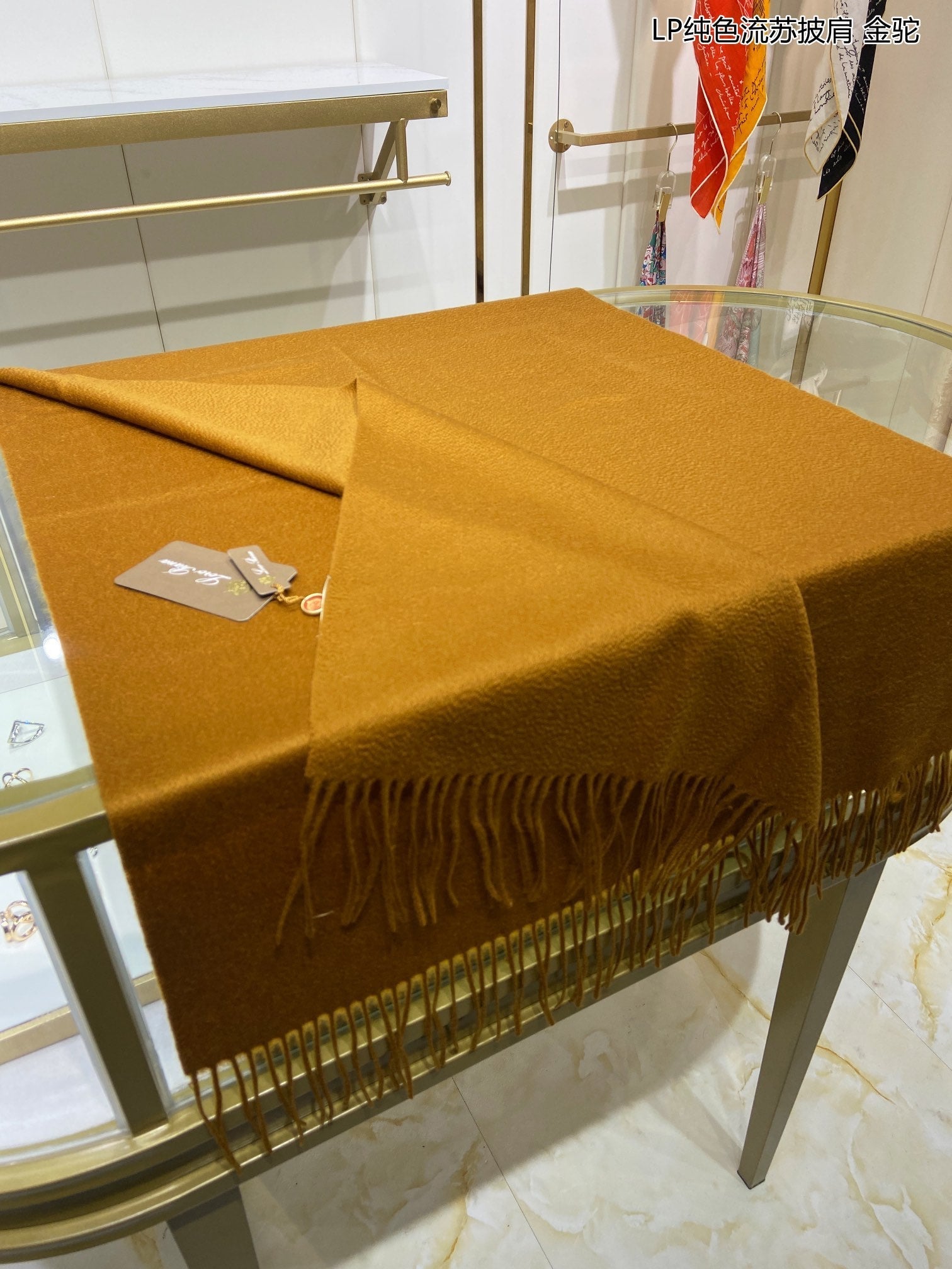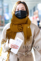 LP Grande Unita Scarf 200 CM In Ochre Yellow Cashmere 645523