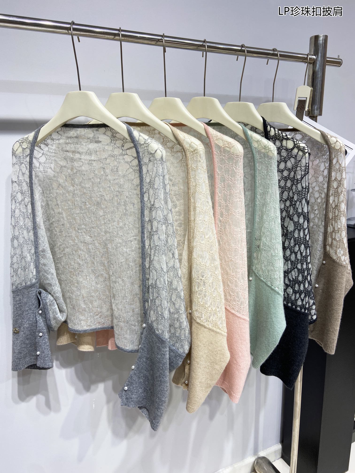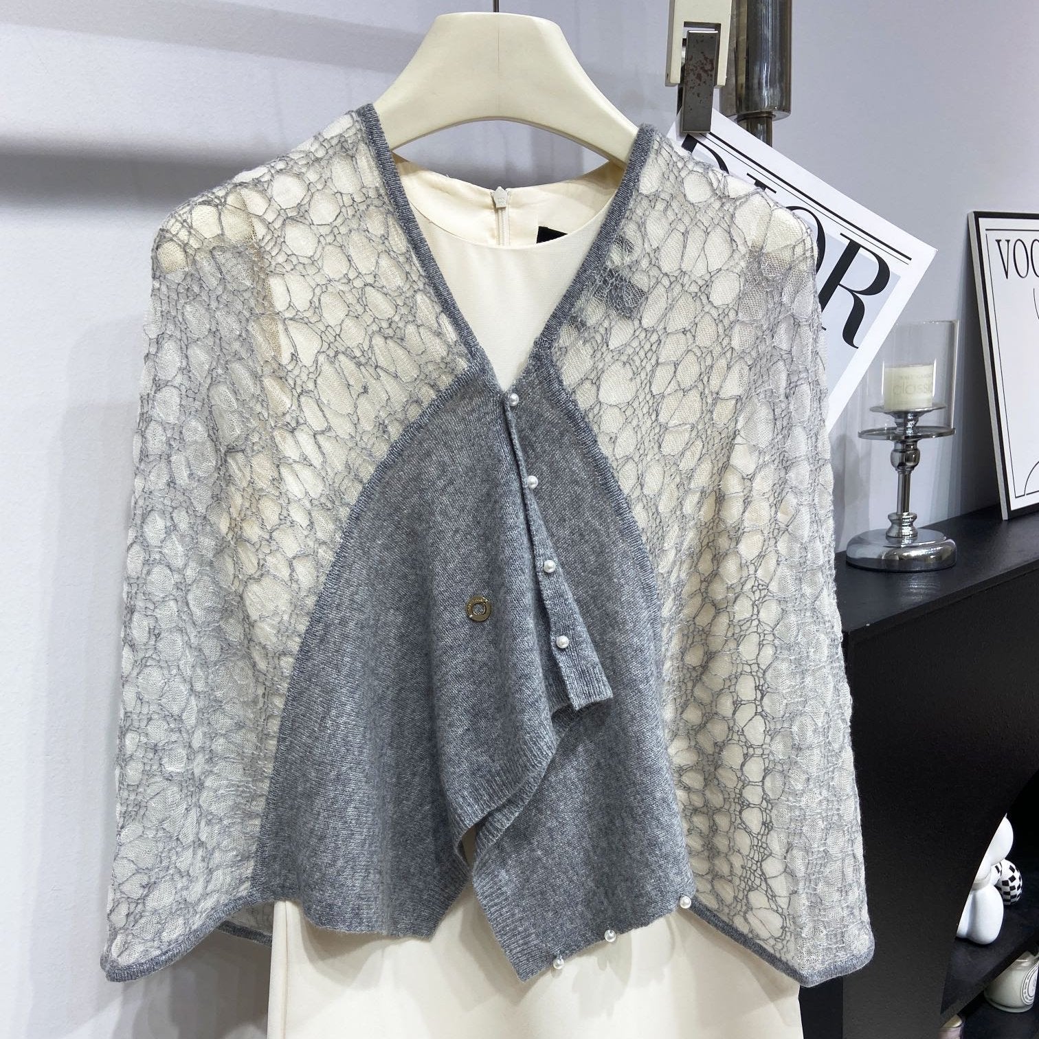 LP Pearl Button Scarf 135 CM In Grey White Cashmere 416913