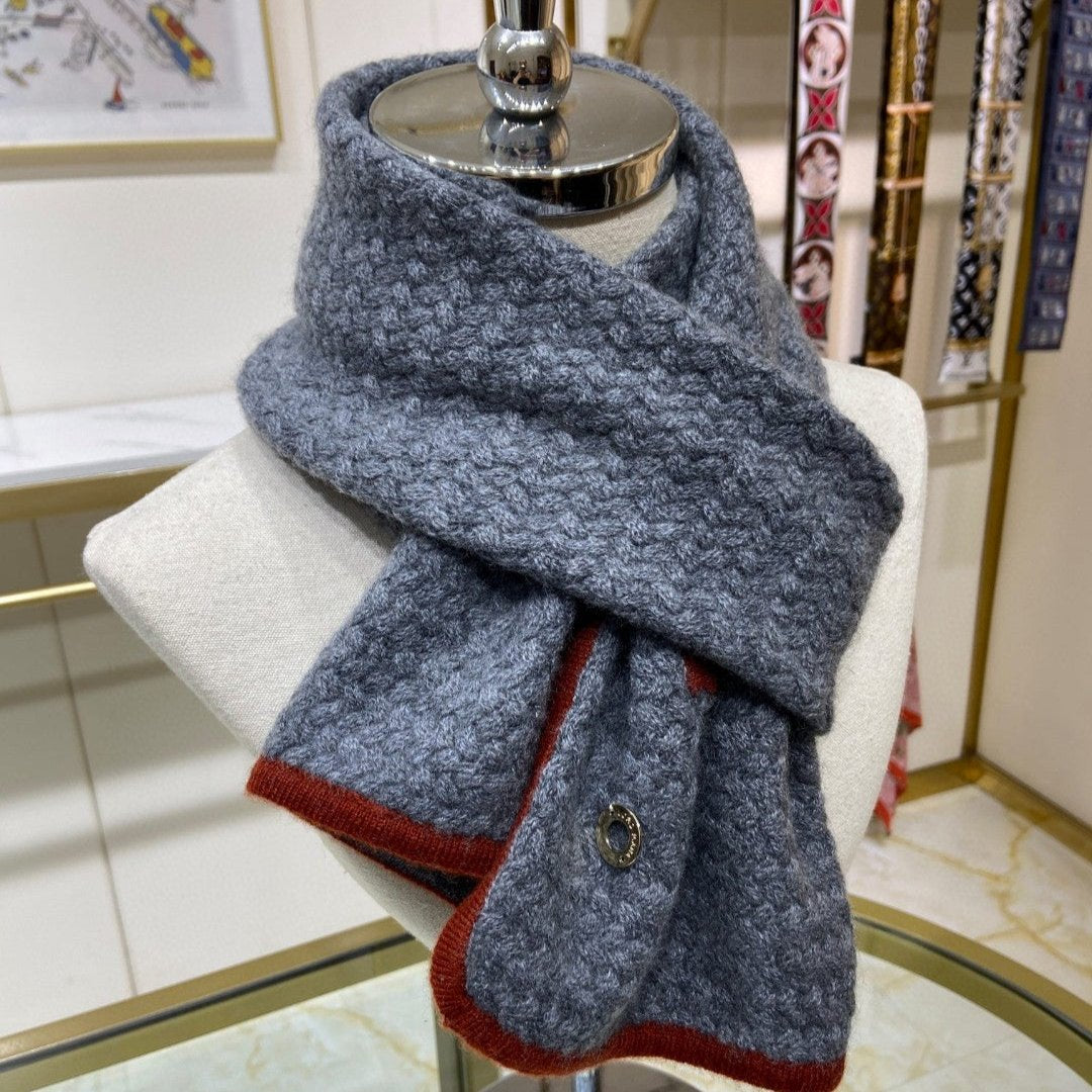 LP Scarf 125 CM In Dark Grey With Red Border Cashmere 201756