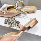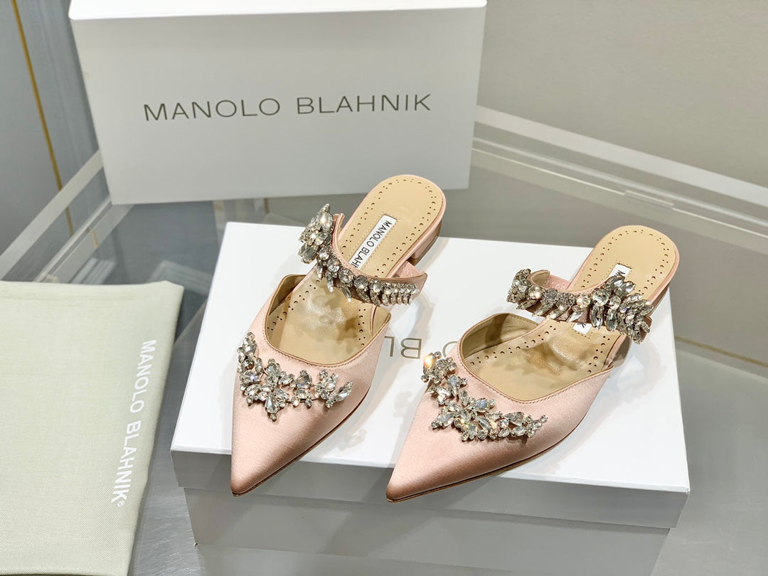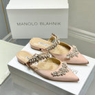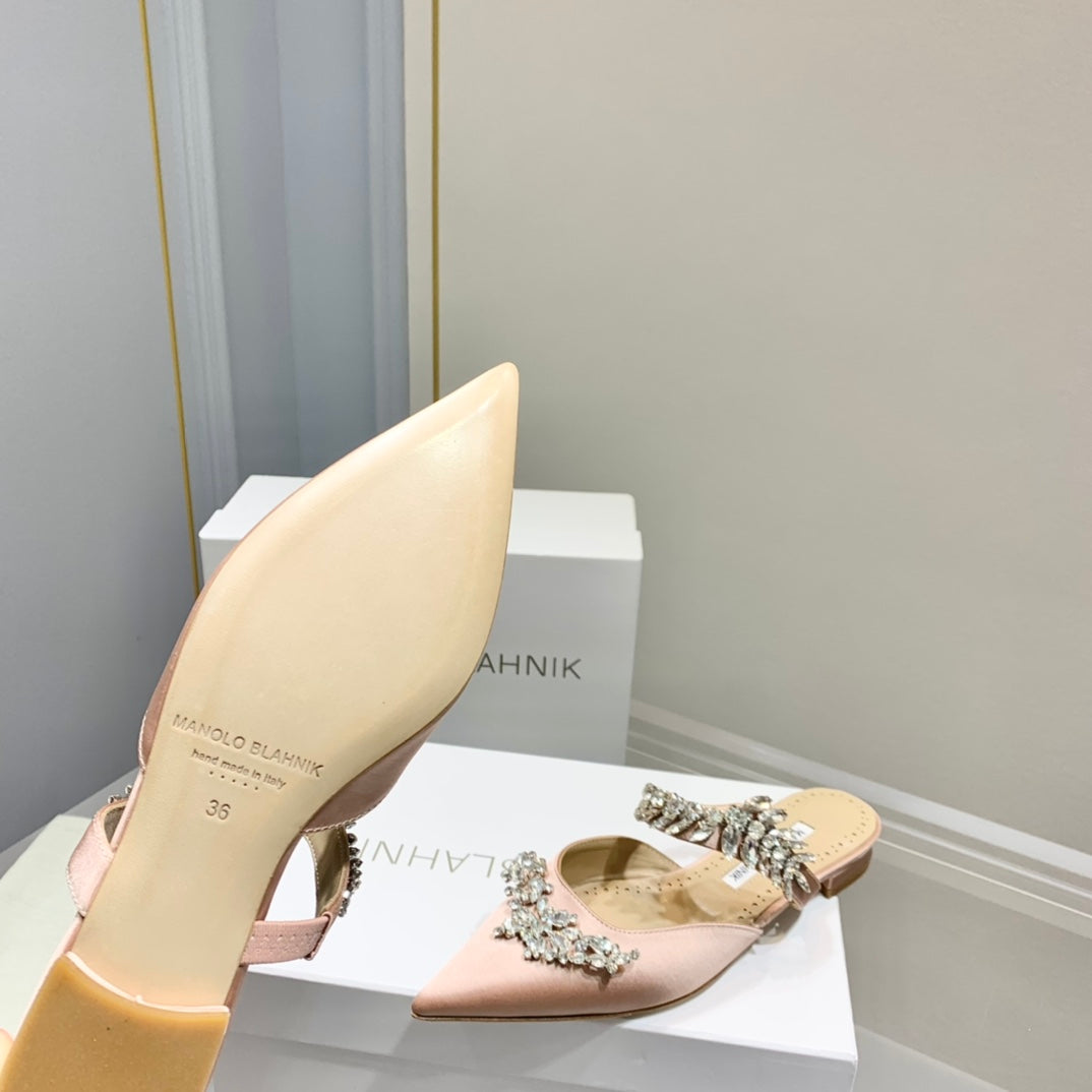 Manolo Flats Mules Crystal Pink Nude Silk Satin 327468