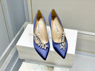Manolo Wheat Ear Rhinestone High Heels Pumps Navy Blue Silk Fabric 327449