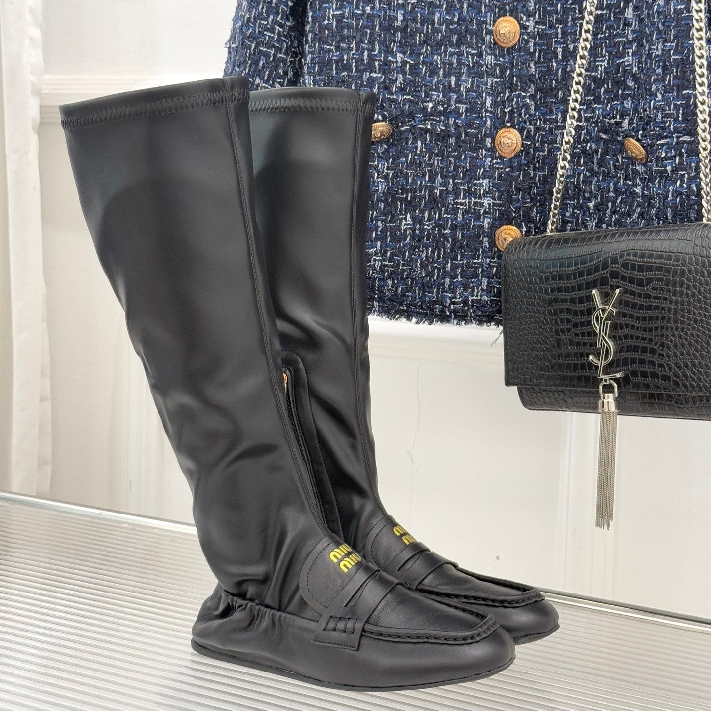 MiuMiu 25 loafer stretch boots black calfskin 517335