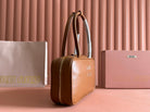 BEAU TOP HANDLE BAG 29 IN TAWNY BROWN GLOSSY CALFSKIN