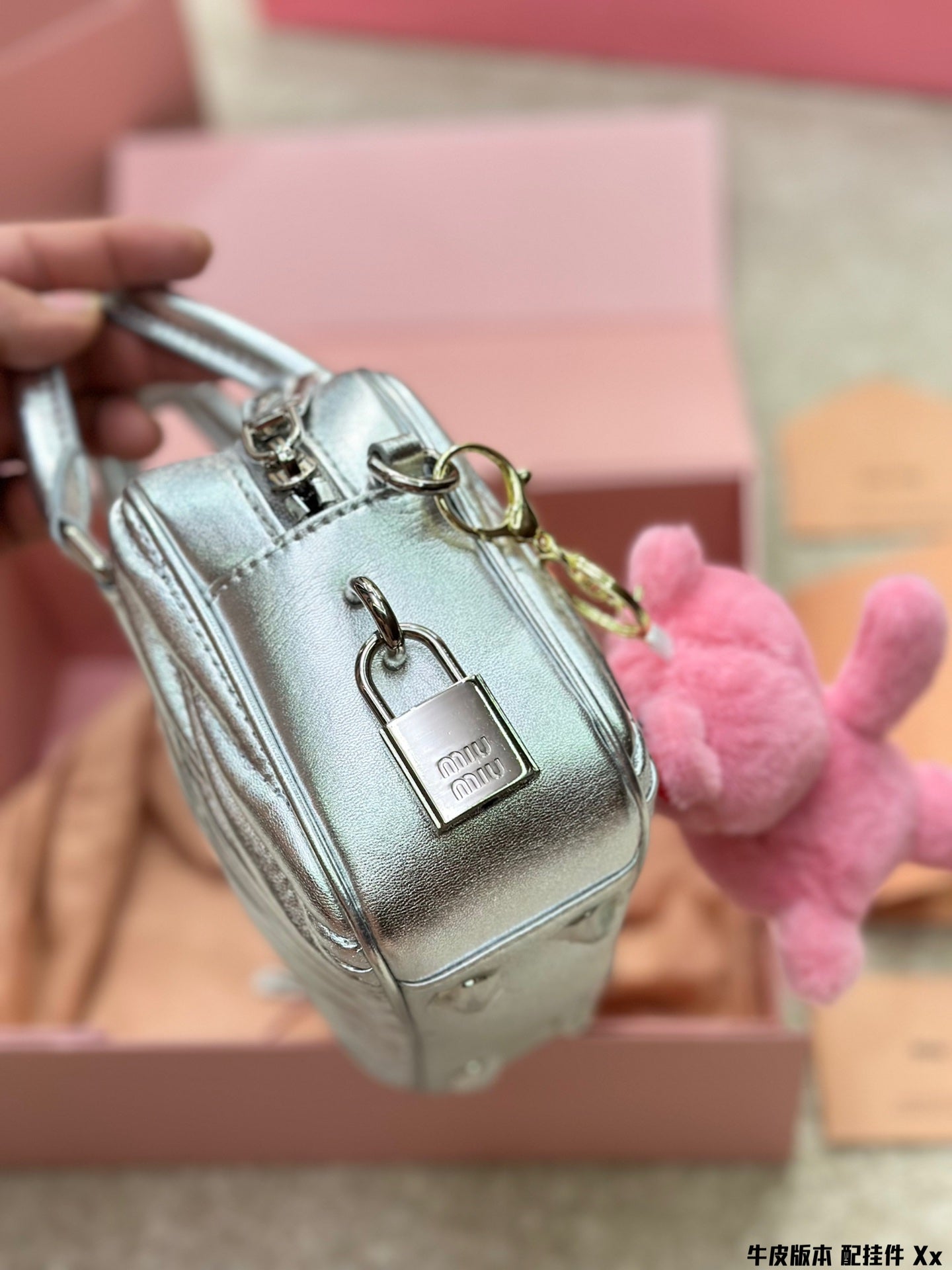 BOWLING BAG 21 IN SILVER LAMBSKIN