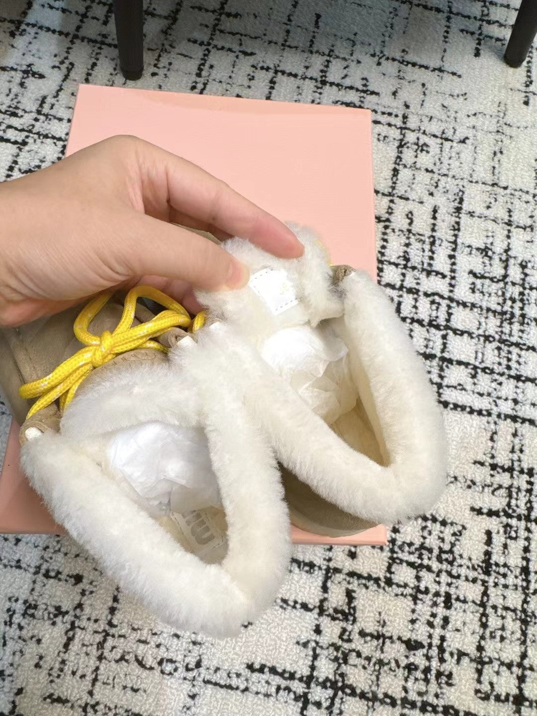 Miu Ankle Boots Light Brown Fleece Lining Cow Suede