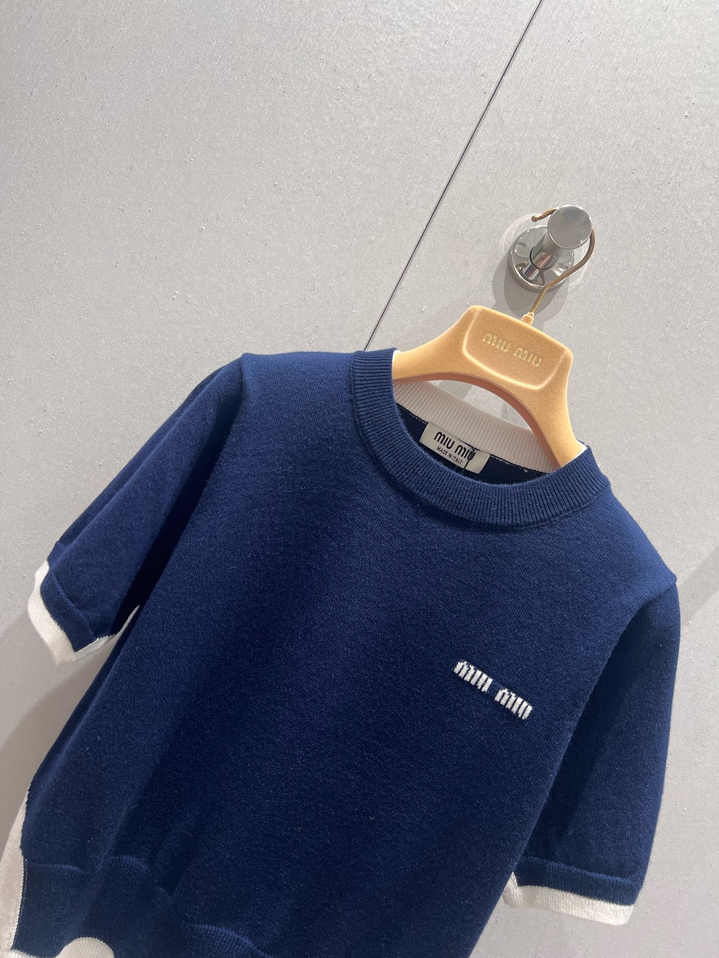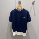 Miu Miu 25 Two-piece Knitted Short-sleeved Top Blue White Wool 210549