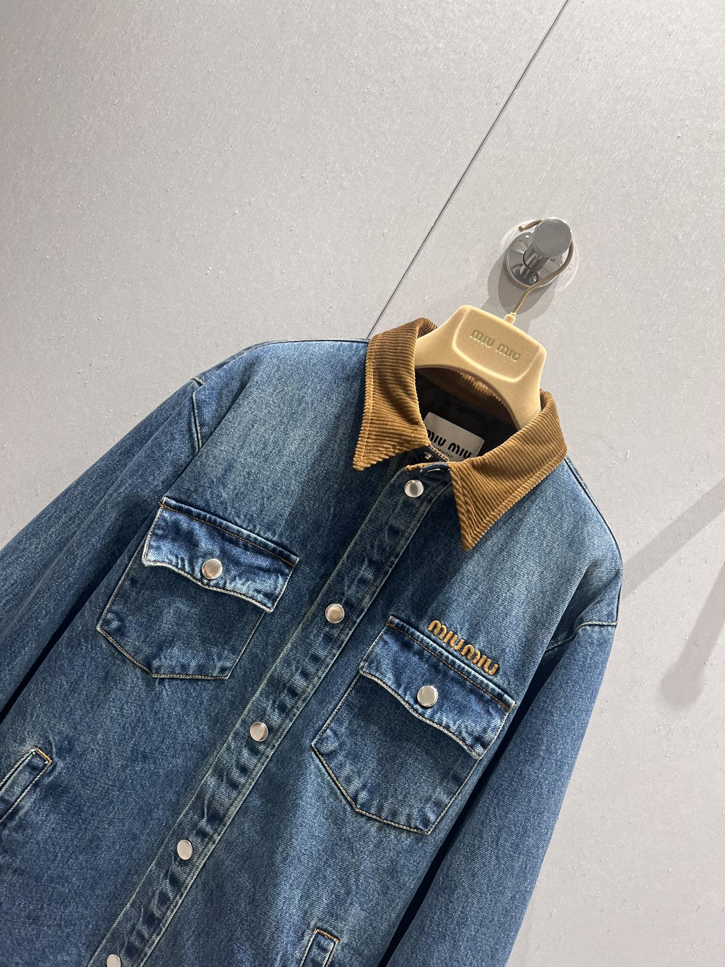 Miu Miu Denim Jacket Blue Brown Cotton 206450