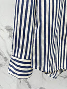 Miu Miu Striped Letter Embroidered Shirt Blue White Cotton