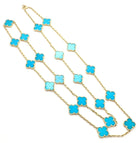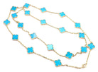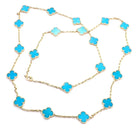 CLOVER 20 MOTIF TURQUOISE 86CM GOLD NECKLACE