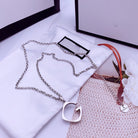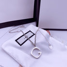 GG PENDANT NECKLACE LOGO ENGRAVED G CHARM TOP PLATE SILVER