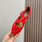 Alaia 2025 Criss Cross With Stud Ballet Flats Red Suede 293214