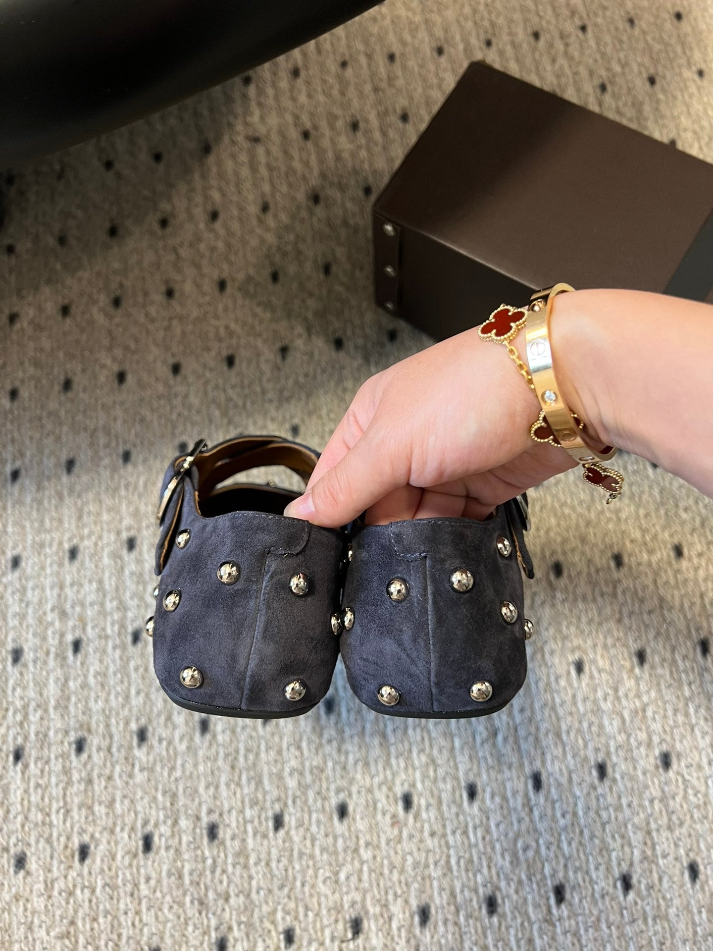 Alaia 25 Criss Cross With Stud Ballet Flats Azure Blue Suede Sheepskin 303691