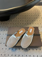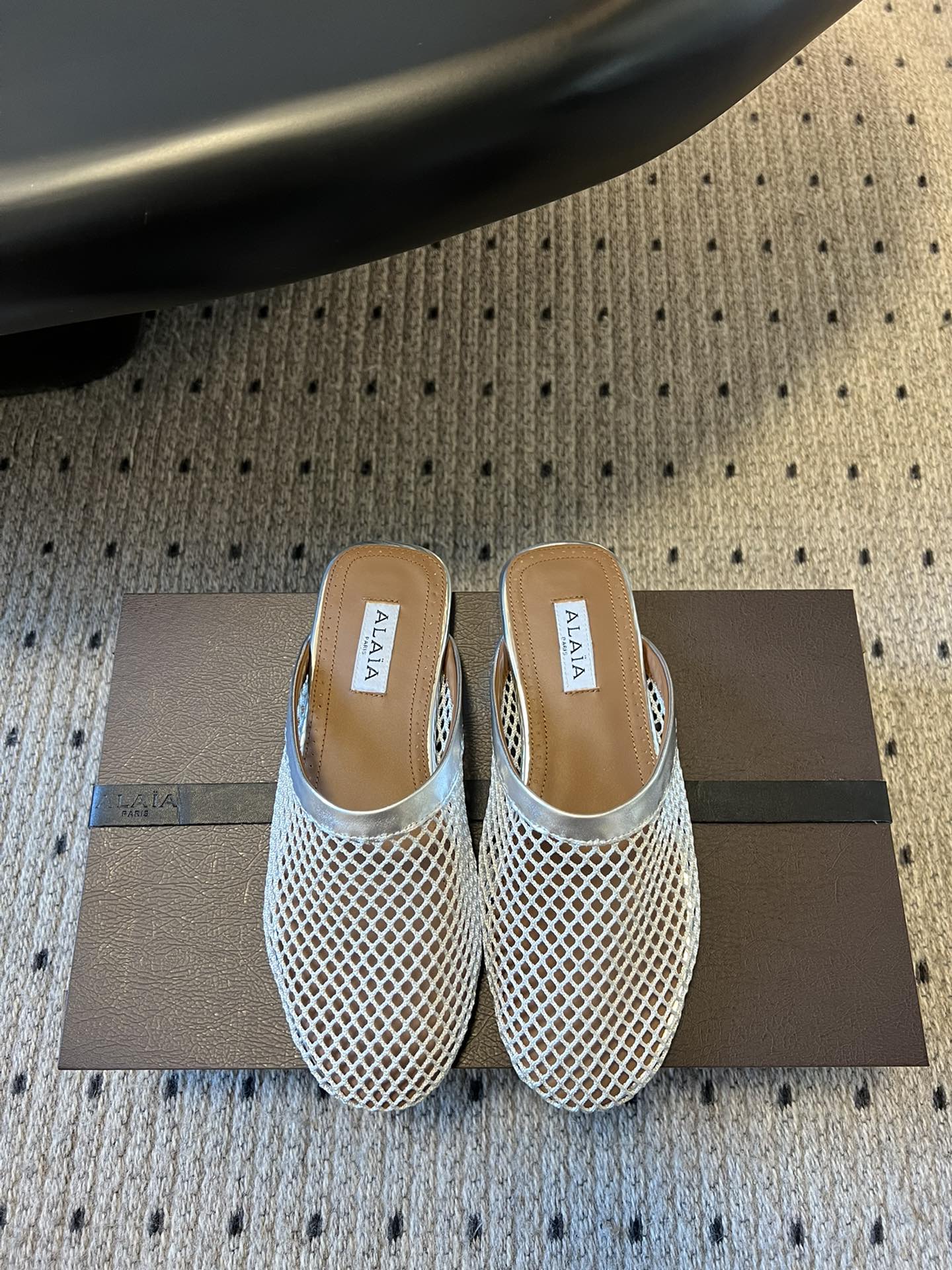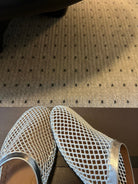 Alaia 25 Fishnet Flat Mules Silver Lampskin 303679