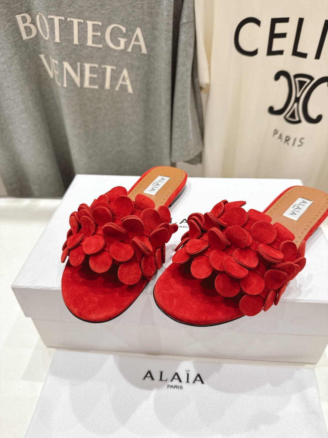 Alaia 25 Flower Slippers Red Sheepskin 302675