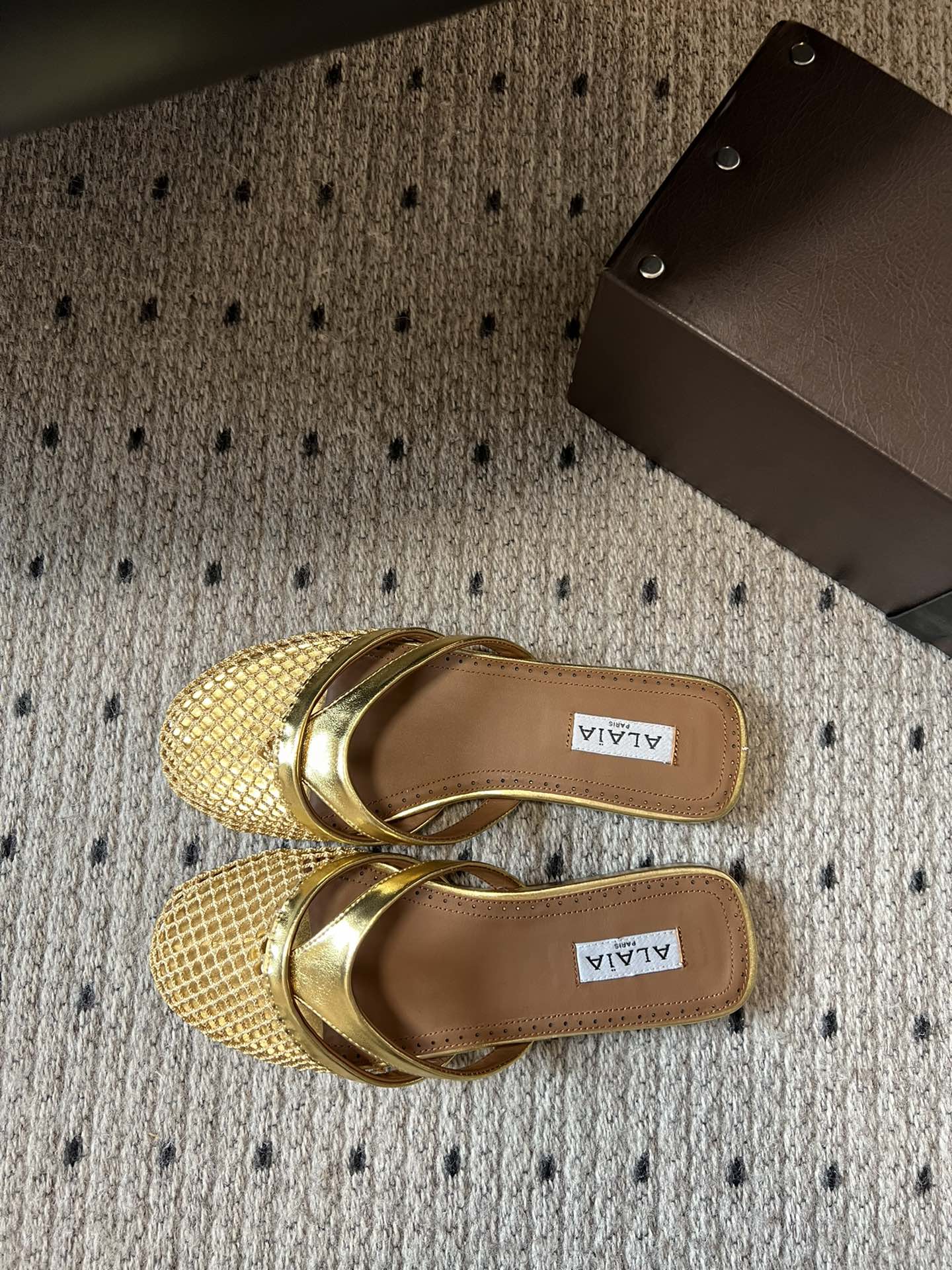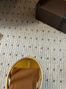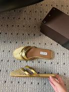 Alaia 25 Infradito Fishnet Flat Mules Gold Lampskin 303709