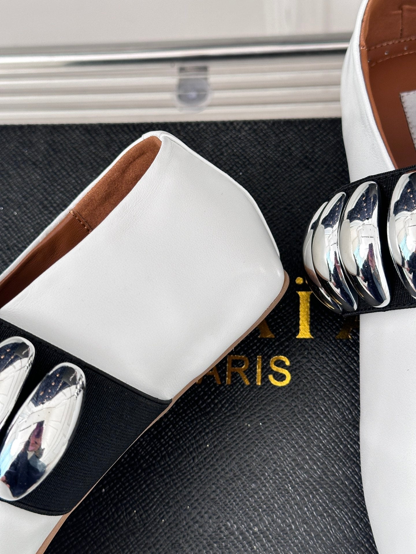 Alaia 25 Mary Jane Jewel Ballet Flats White Calfskin 293246