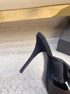 BARBARA BIG BOW MULES IN BLACK SILK