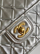 CC 25C Flap Bag 25cm Silver Metalic Quilted Lambskin