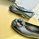 CC 25P Ballet Flat Flower Black Calfskin Patent Calfskin