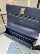 cc 25S Woc Top Handle 19cm Dark Blue Grained Calfskin Light Gold Hardware