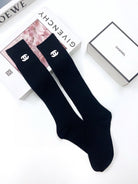 • Classic pair of long socks with Double C letter logo from CC, pure cotton fabric.