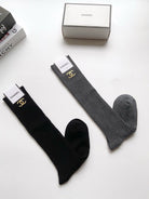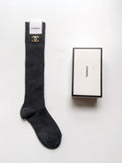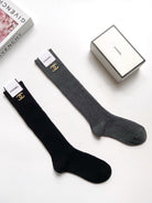 • Classic double C letter logo pure cotton knee-high socks from CC, leg socks.