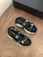 CC Toe Sandals Black Mix Camellia Pattern Leather 299539