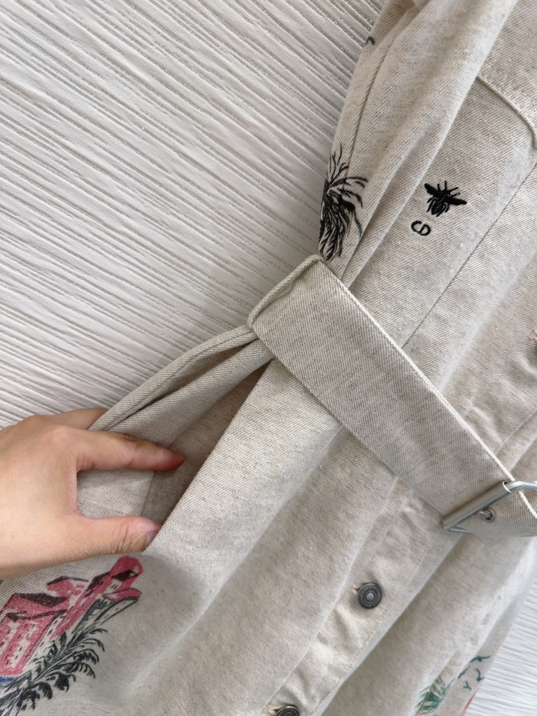 CD 2025 Shirt Dress Beige with Colorful Cotton