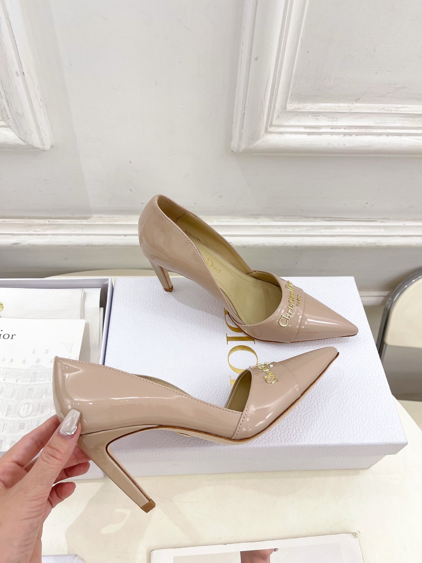 CD 25 Pump High Heels Pink Nude Patent Leather 307424