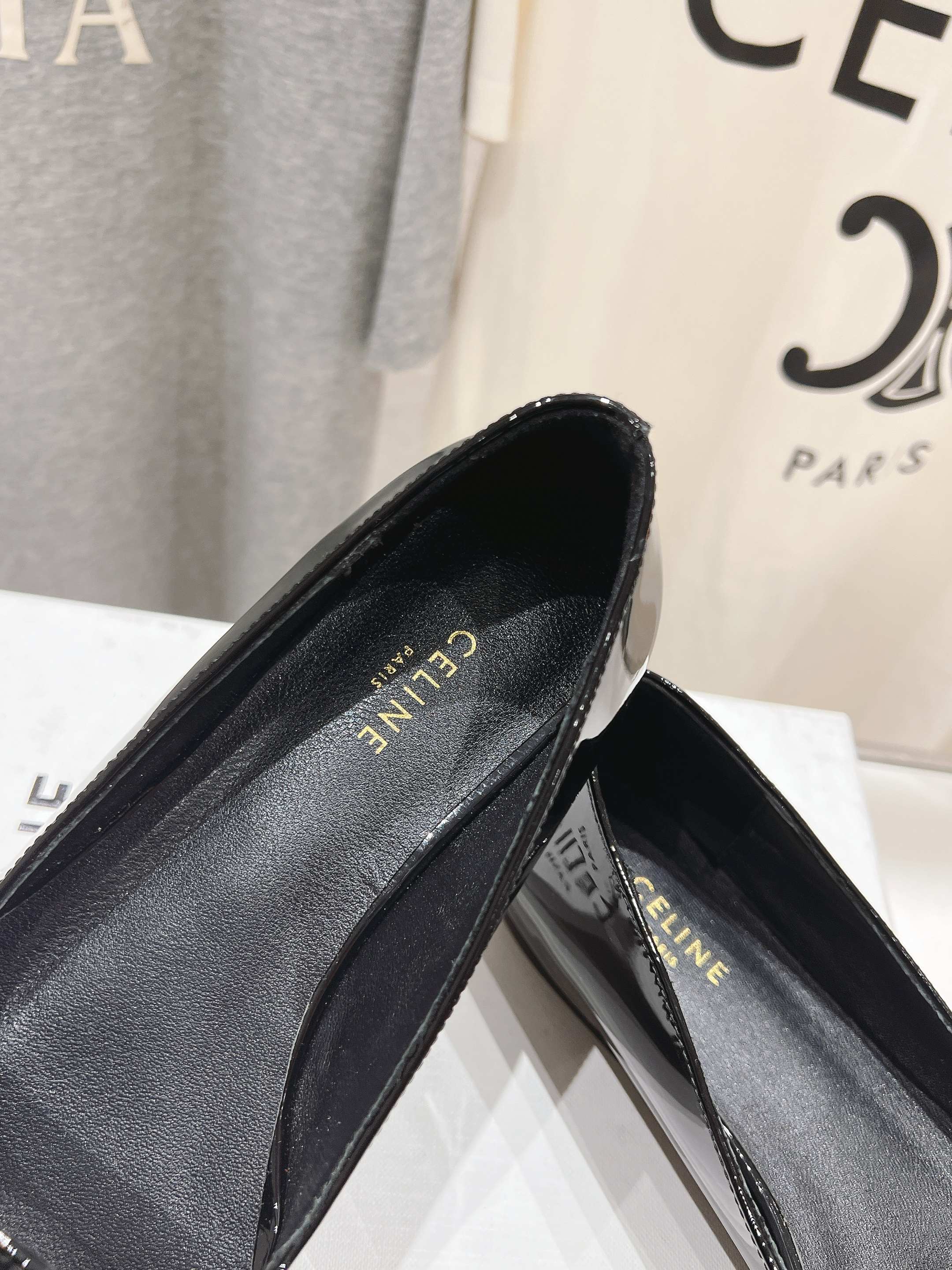 CELINE 25C Ballet Flats Black Patent Leather 236744