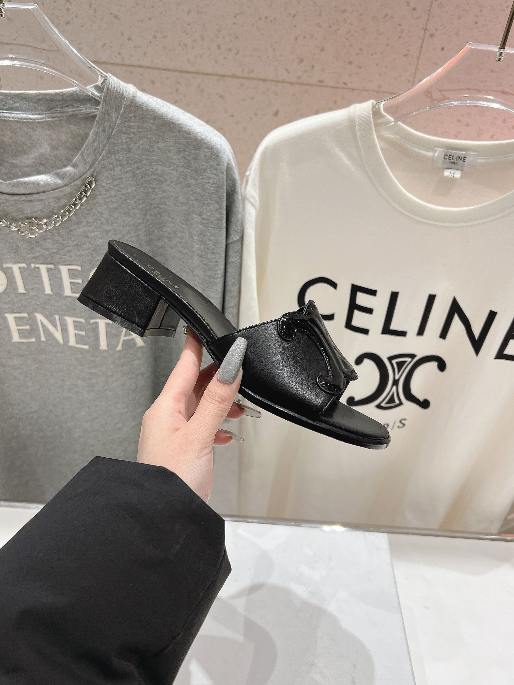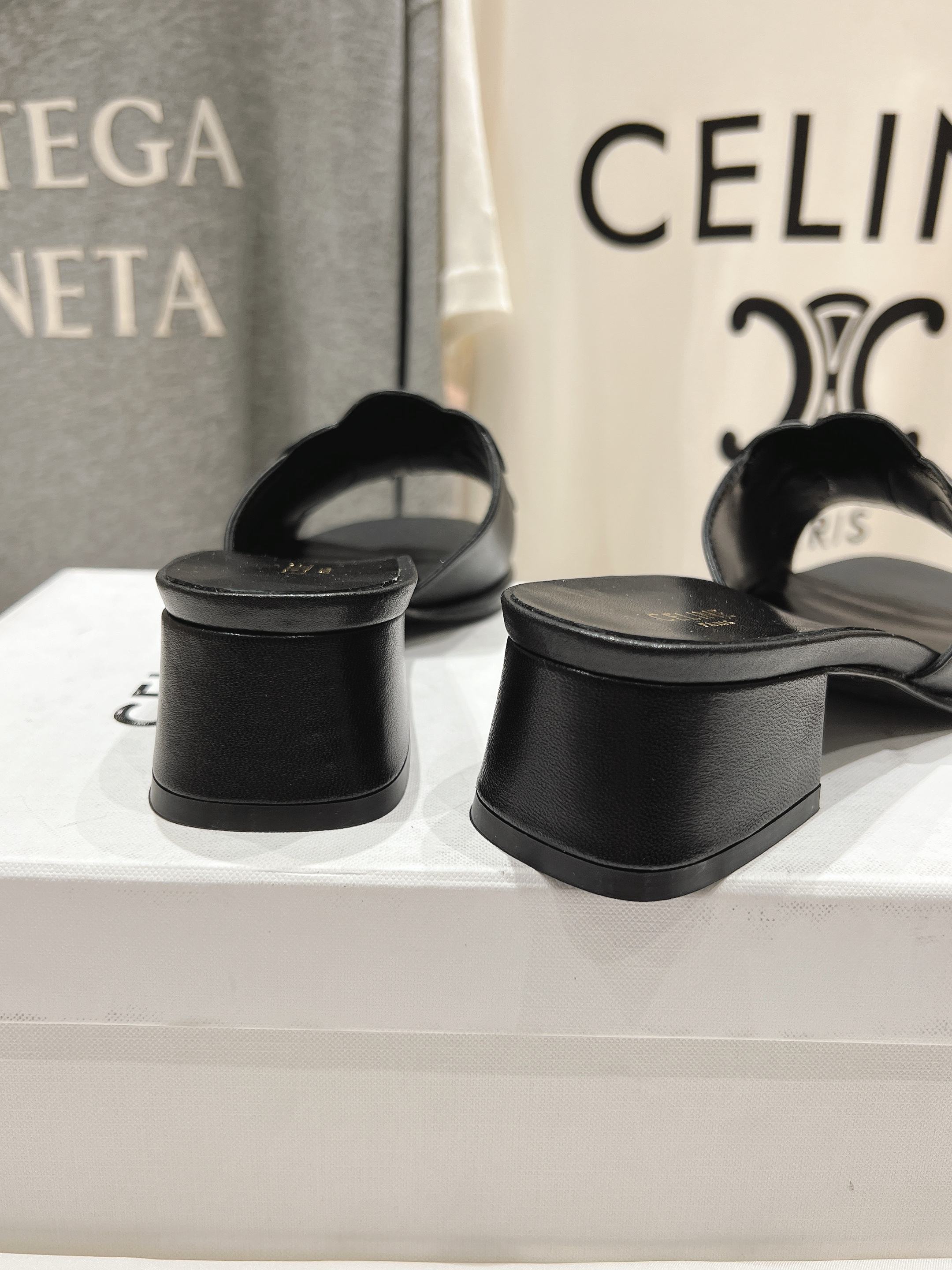 CELINE 25C CLEMENCE MULE BLACK SHEEPSKIN 236751