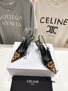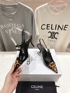 Celine 25C Judy Double Strap Mary Jane Slingback Black mix Brown Sheepskin 236777