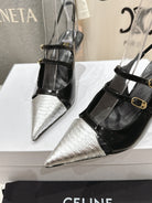Celine 25C Judy Double Strap Mary Jane Slingback Black mix Silver Sheepskin 236776