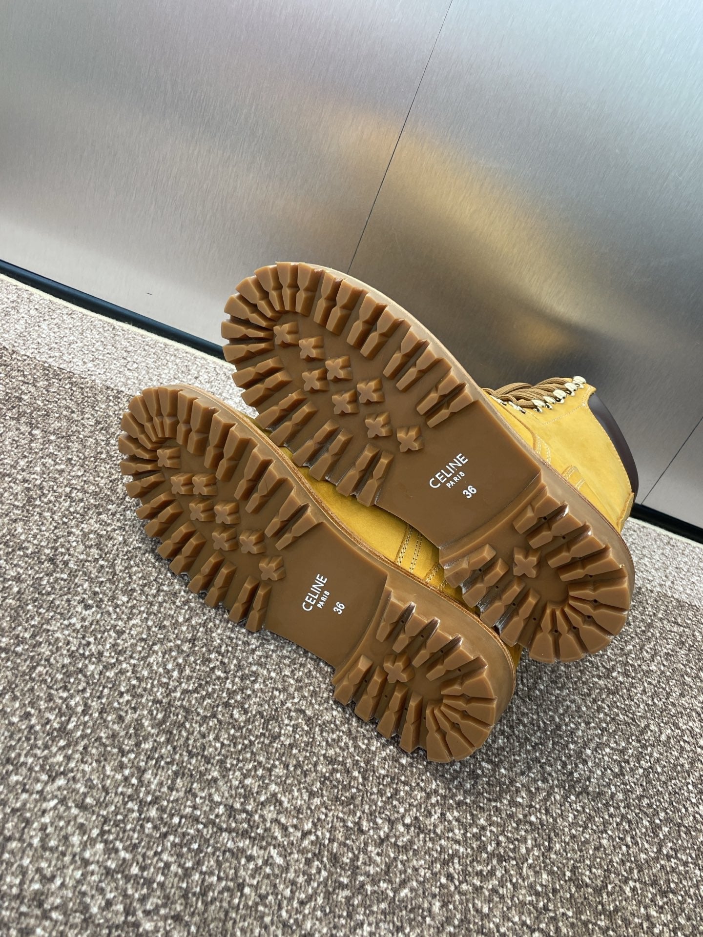 CELINE 25 Ankle Boots Yellow Suede 433390