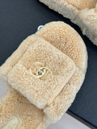 Chanel 25 Buckle Flip-up Thick-soled Slippers Beige Wool 465385