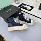 Chanel 25 High Sneaker Blue White Cowhide Denim Frabic 469779
