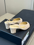 Chanel 25 Plaid Slingback Beige Black Suede Sheepskin 468363