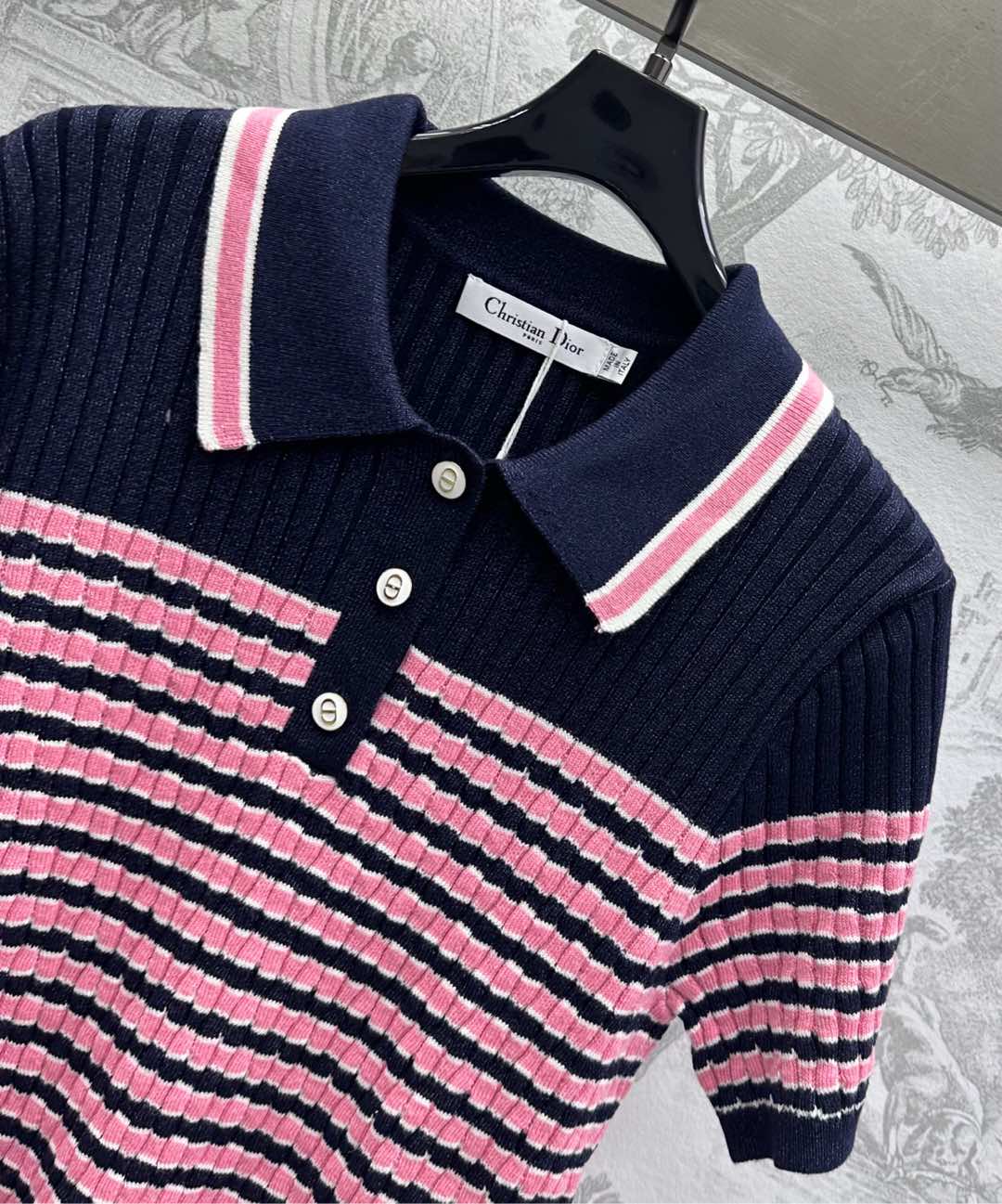 Dior 25 Polo T-Shirt Night Blue mix Pink Linen 232265