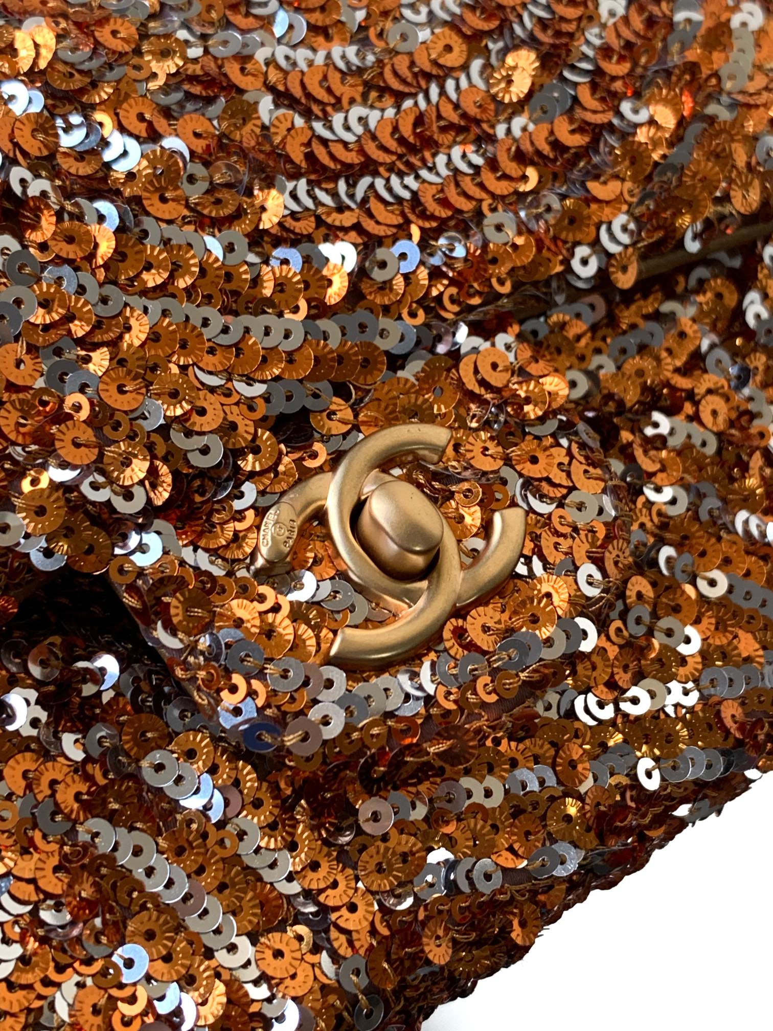 Flap Bag Mini 20cm Beige Calfskin Gold Bronze Sequin