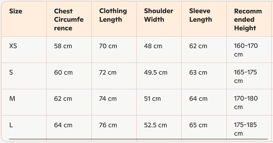 - Size : XS, S , M , L