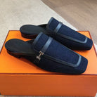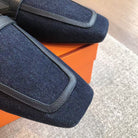 Hermès Pre-Owned Logo-buckle Loafers Blue Black Denim Leather
