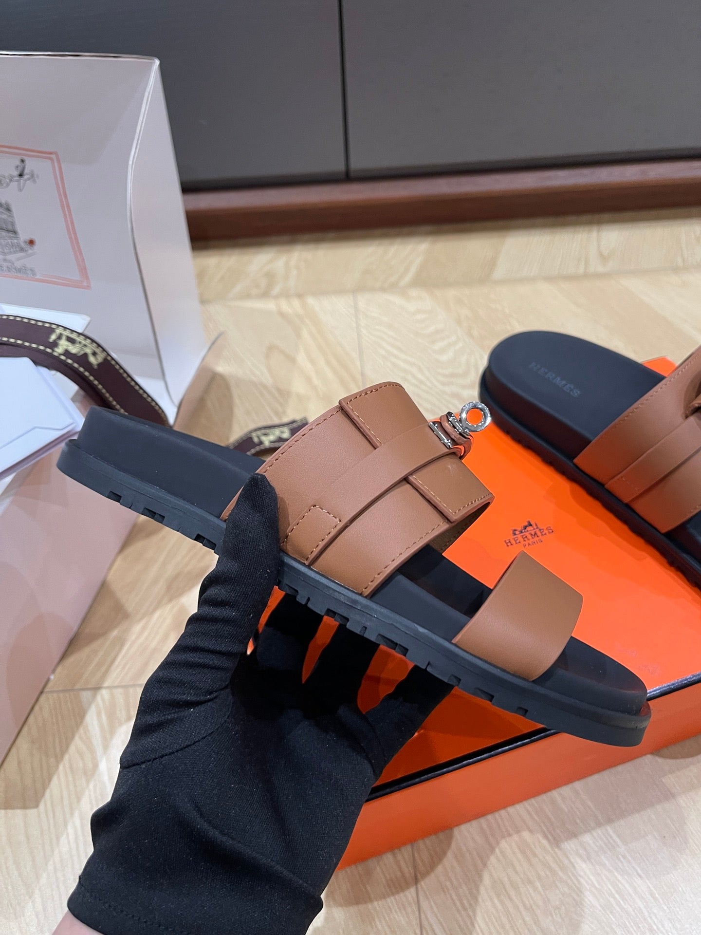 HM 25 Jackson Sandal Brown Black Calfskin