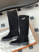 HM Jumping Boots Black Kelly Buckle Suede 423267